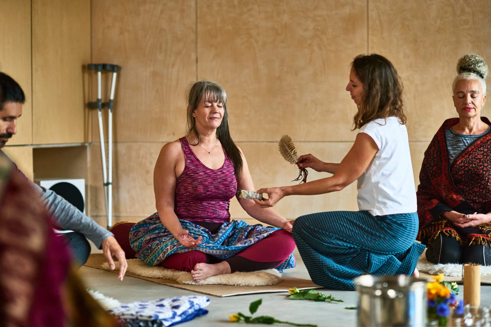 Når alle har delt, kommer de andre som bare ønsker å delta på lydbad for ro og avslapning.